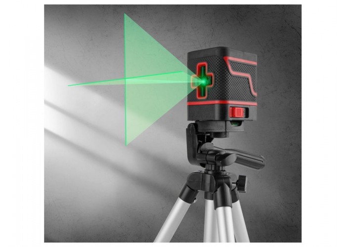 Компактный кросс-линейный нивелир для простых задач по построению плоскостей, отличается зеленым диодом, позволяющим работать в условиях высокой освещенности. Оснащен функцией автоматической настройки имеет прорезиненые боковые грани корпуса, что выполняет противоударную функцию. Есть возможность фиксации лучей. Поставляется в комплекте со штативом 65 см. Тип лазера: 635-670 нм класс 2 1 мВт Функция самонивелирования: есть; Лазерный крест: есть; Цвет луча: зеленый; Точность: - 0,4 ммм; Рабочий диапазон: 15 м; Диапазон самонивелирования: - 4; Угол развертки луча: 110 гр.; Корпус: IP54; Тип питания: элемент питания: 21,5 В тип АА; Резьба: 14; Штатив: есть; Время нивелирования: 3 с; Диапазон рабочих температур: -10С до 50С; Масса: 280 г; Упаковка: картонная коробка, тканевая сумка Гарантийный срок - 2 года.